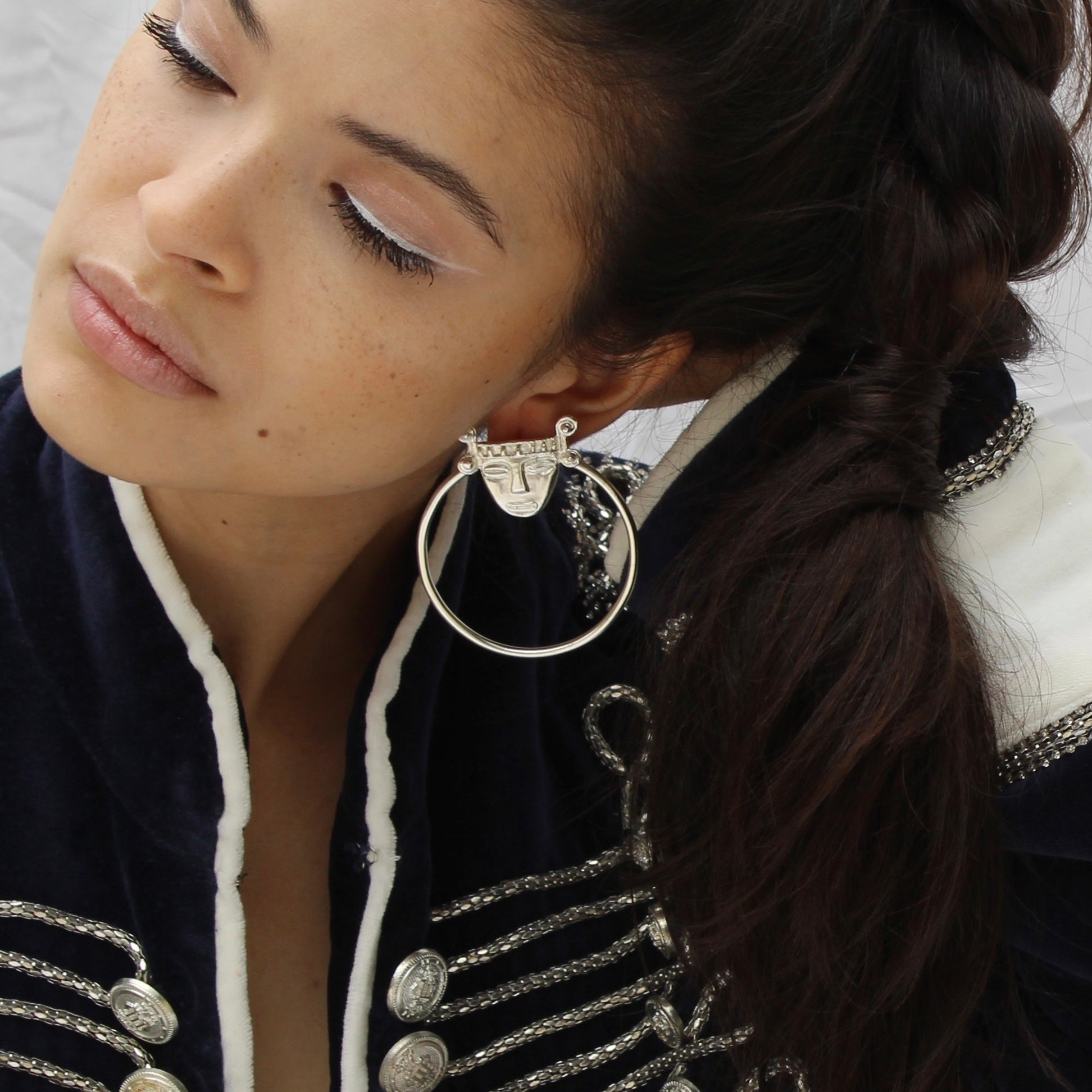 Nuestros Poseidon Hoops son unos aretes de cara precolombina más aro.